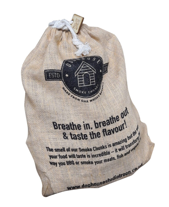 The Doghouse Smoke Chunks are made from authentic oak casks, used to age the finest Scottish Whisky. Sourced directly from the Coopers, our barrels are steeped in whisky for up to 30 years, the barrels are replaced and repurposed into these highly aromatic Smoke Chunks (and we make furniture with them too!), combining the strong, rich smoky flavour of aged oak with a sweet infusion of whisky. It’s a game changer and will alter the way you cook red meats, fish (amazing with salmon!) and vegetables.
