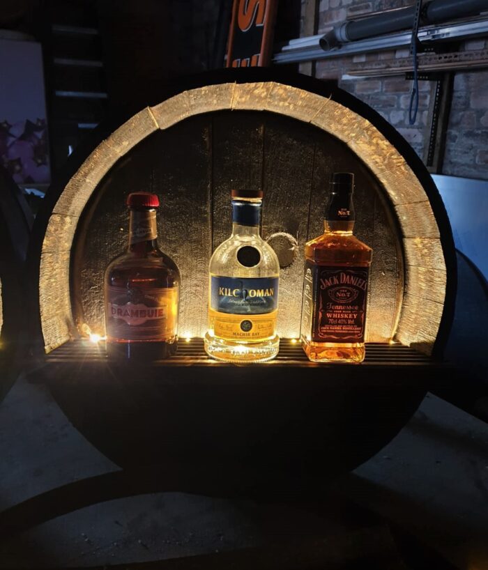 Handcrafted from the full end of a genuine Scotch whisky barrel, this stunning display unit features energy efficient LED lighting to showcase that special bottle of malt and crystal tumbler or 2!